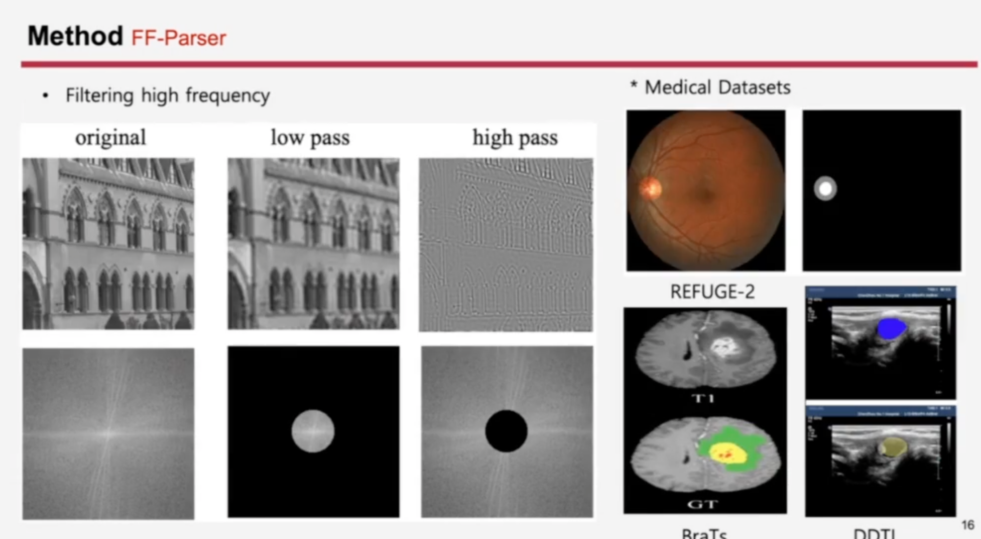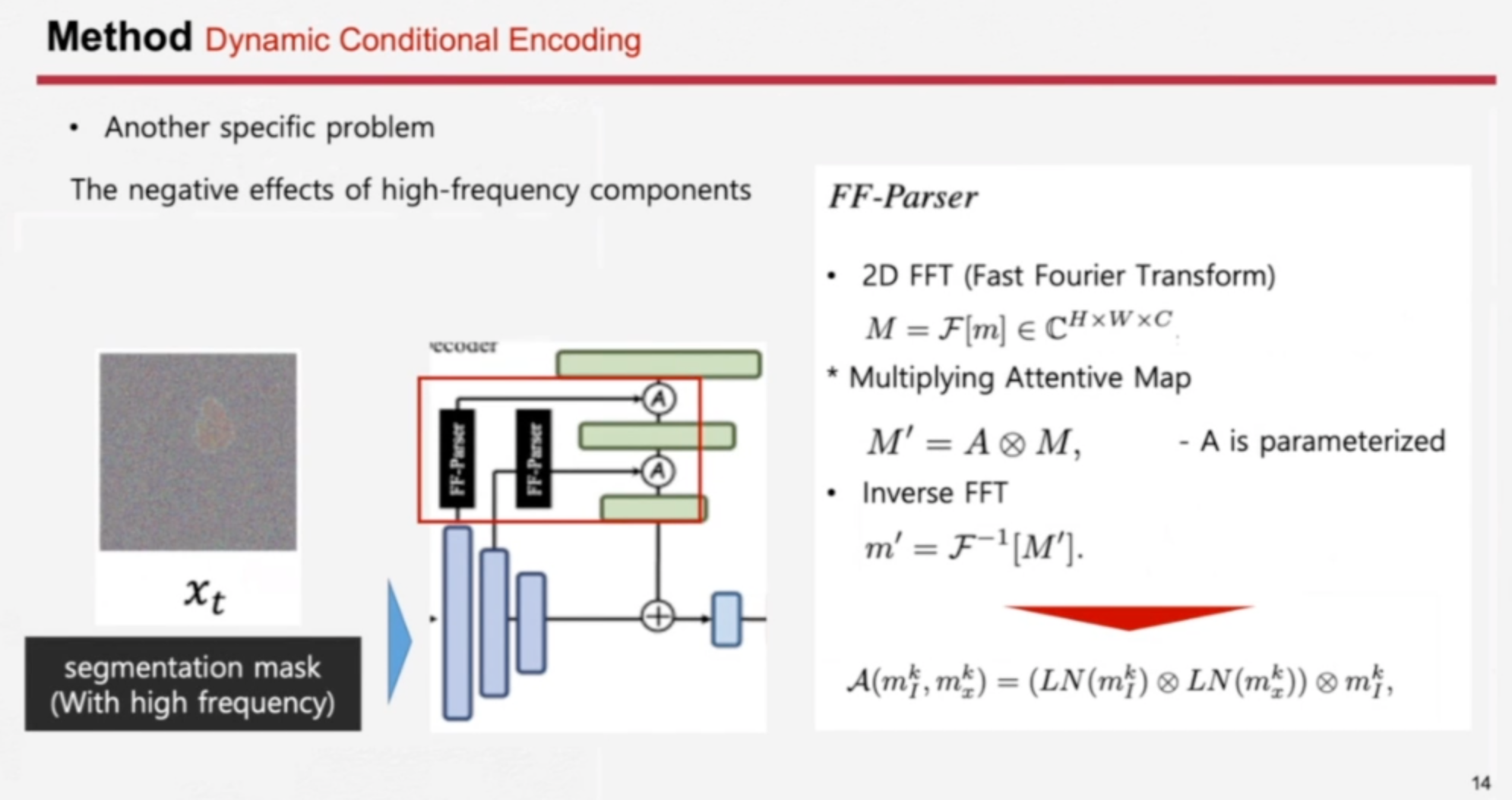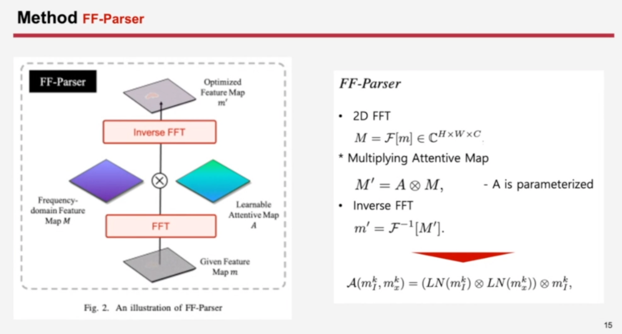 FF-Parser 같은 경우에는 저렇게 attentive like mechanism을 사용했을 때라도 high frequency가 negative effects를 가져오는 단점이 있어서 이 부분을 해결하기 위해서 Fourier Transform을 가져왔고 그 부분에서 어떤 high frequency가 중요한지를 걸러낼 수 있도록 구성하였습니다.