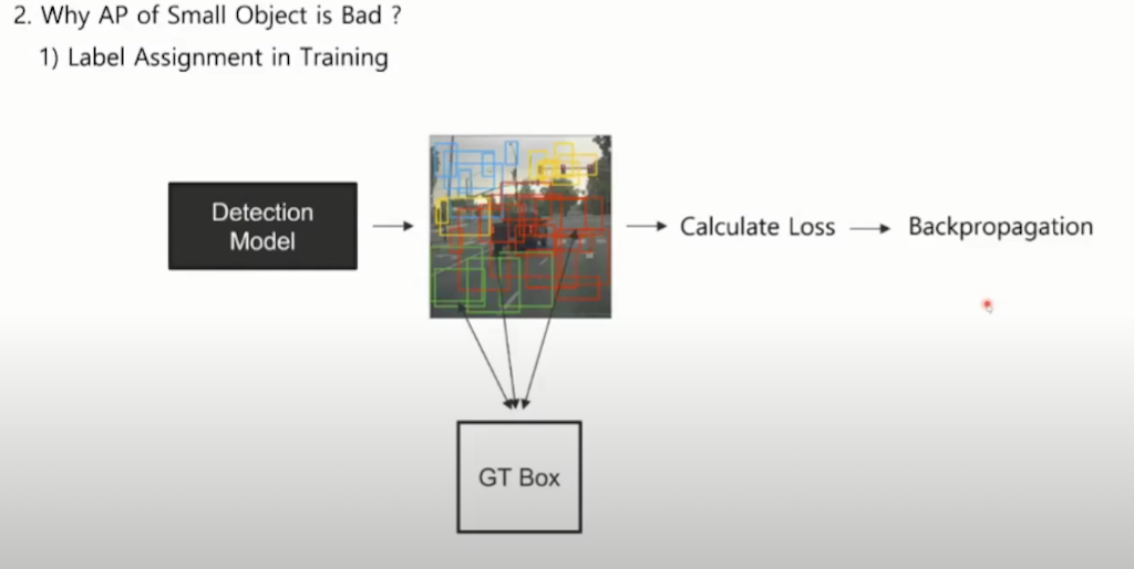 학습 과정입니다. detection 모델에서 나온 결과 박스들을 가지고 Loss를 계산하고, backpropagation을 진행합니다. 이때 Loss를 계산하기 위해서는 ground truth Box랑 차이를 계산합니다.