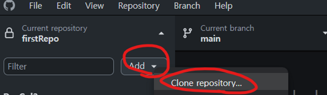 만약 첫 화면에 Clone Repository가 있다면 바로 clone repository를 눌러주시고,