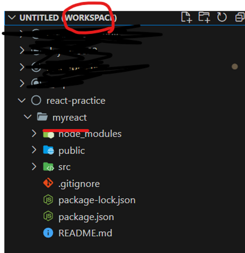 그러면 이제 workspace에 myreact 폴더가 추가된 것을 보실 수 있습니다.