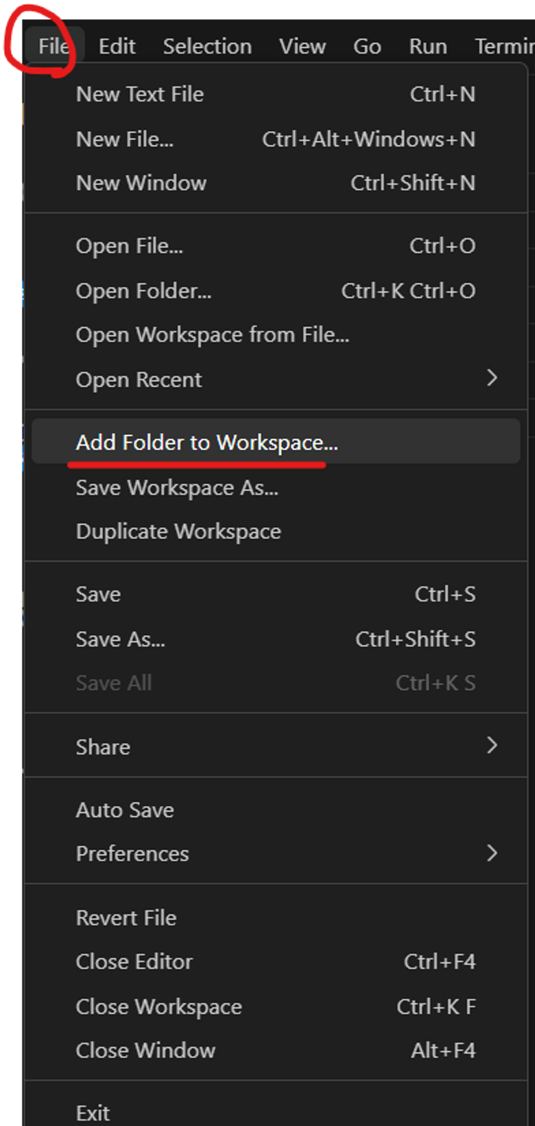 - Add Folder to Workspace를 누른다.