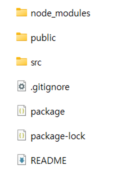 : 프로젝트 구성에 필요한 패키지들과 프로젝트에서 사용하는 라이브러리들이 해당 폴더에 설치된 것입니다. 일단은 그냥 ‘아 내 프로젝트에서 필요한 라이브러리들이구나~’정도로만 생각하고 넘어가볼까요? npx create-react-app이라는 명령어를 통해 우리 프로젝트 실행에 필요한 라이브러리들을 자동으로 설치해준 것입니다.