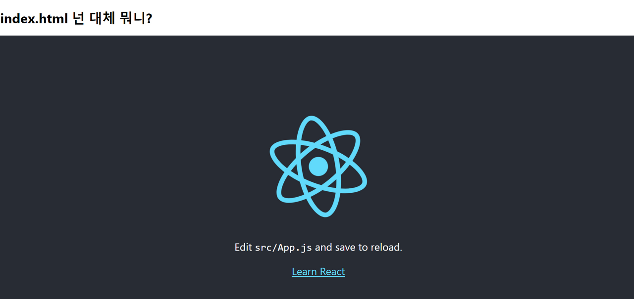 그랬더니, 우리가 궁금해했던 리액트 로고와 검정 배경이 페이지에서 사라졌습니다.