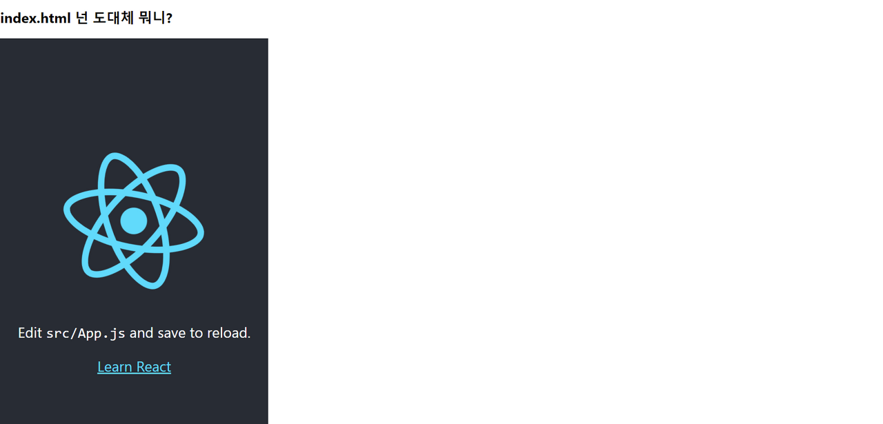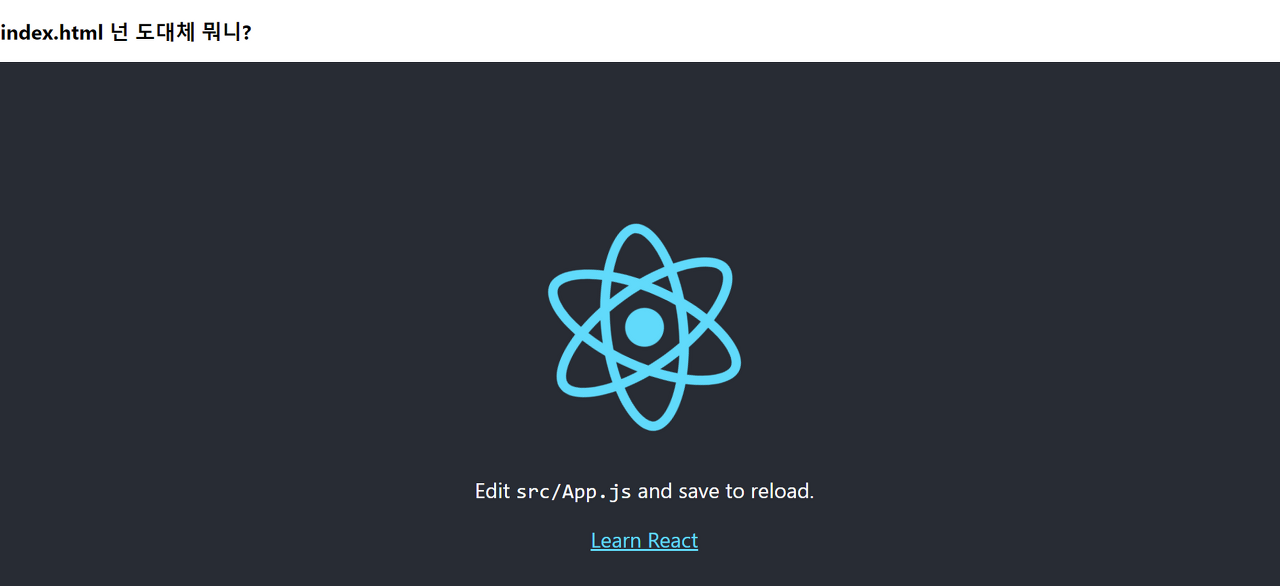 그런데 분명 우리가 보고 있던 index.html파일엔 저 리액트 로고와 관련된 코드가 없는 것처럼 보였습니다. 그렇다면 저 리액트 로고는 어떻게 화면에 나타나게 된 것일까요?
