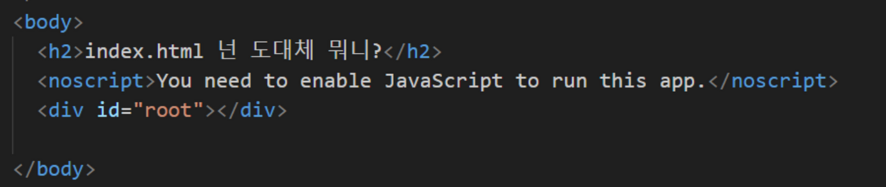 우리는 public폴더부터 구경을하다가 index.html 파일을 알아봤어요.