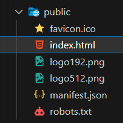 npx CRA(create-react-app)를 진행했다면 public 폴더가 위의 사진처럼 만들어집니다.