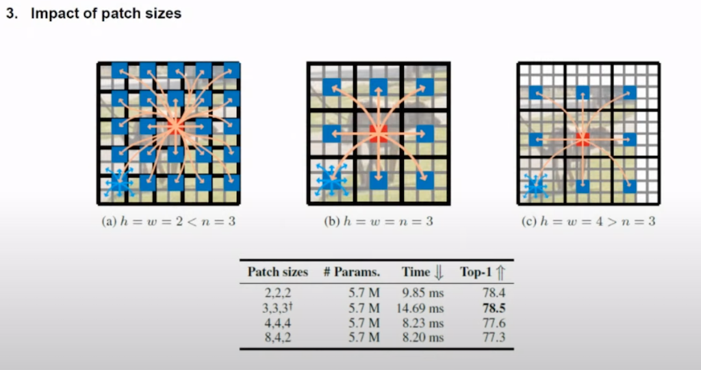 다음으로는 patch size의 영향입니다. patch size를 다르게 했을 때 모든 pixel의 정보를 encoding 할 수 없었기 때문에 3, 3, 3으로 했을 때 가장 성능이 좋은 것을 확인할 수 있습니다.