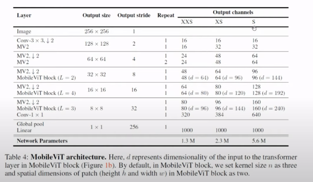 Architecture입니다. Output size가 256 x 256에서 1 x 1R까지 점점 내려가는 걸 볼 수가 있습니다. 논문에서 제안한 것은 S모델 , XS 모델, XXS모델이 있습니다. 세 가지 모델은 채널 수가 다르다는 것으로 분류했습니다. 그래서 parameter 수가 1.3M에서 5.6M으로 굉장히 적은 것을 확인할 수 있습니다.