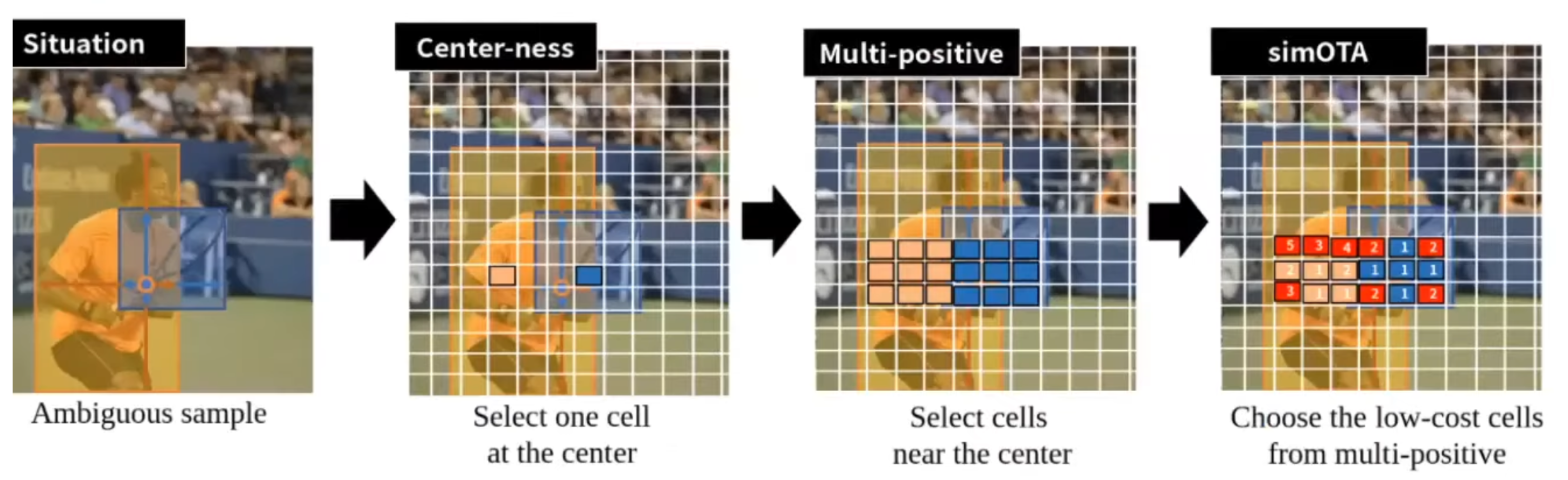 YOLOX의 저자는 가운데에 있는 Cell 말고 옆에 주위에 있는 Cell들도 더 충분히 좋은 prediction을 할 수 있다고 보았고, 그런 관점에서 Multi positive라는 것을 제안을 해서 센터 말고 주위에 있는 Cell들도 다 사용을 해서 prediction을 하자라고 제안을 했습니다.
