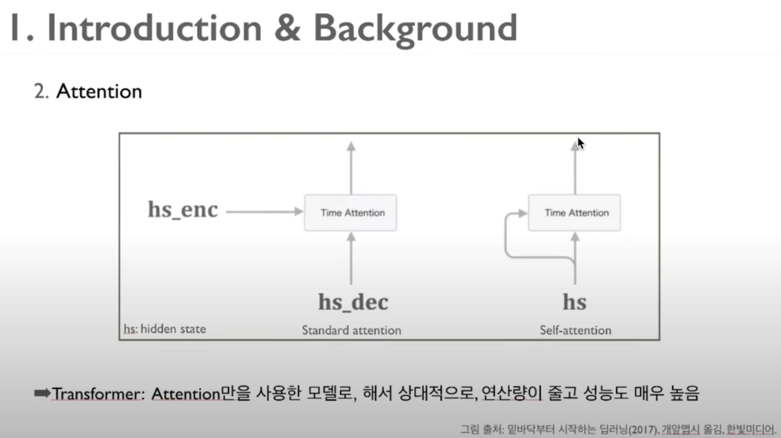 앞으로 소개해 드릴, Transformer 는 attention만을 이용한 모델입니다. 그렇기 때문에 연산량이 매우 줄고 성능도 상당히 높은 것으로 알려져 있습니다.