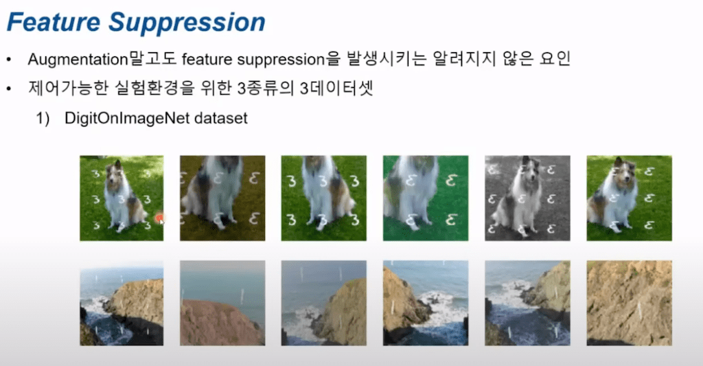 마지막 세 번째는 Contrastive learning에서 Augmentation이 중요합니다. 그와 관련해서 발생하는 feature suppression에 대한 내용입니다.