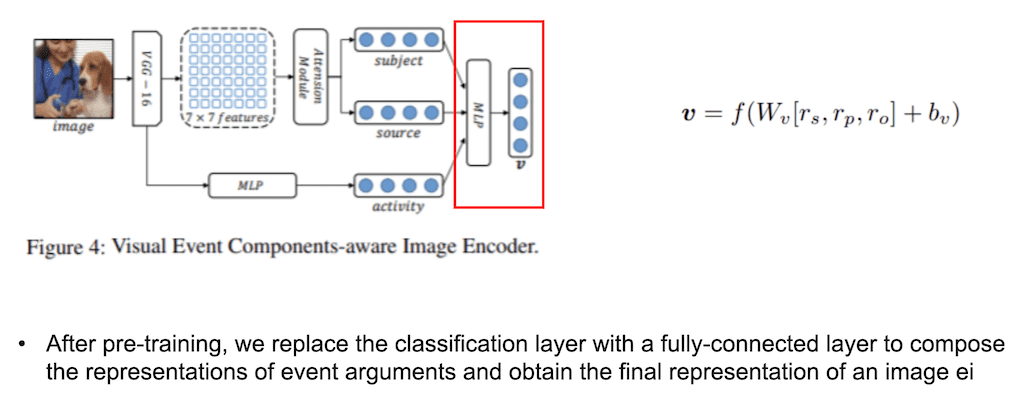 필요한 거는 주체와 객체 그리고 동사 이렇게 세 가지니까 ROLE에 AGENT, SOURCE, 그리고 CLIPPING 세 가지를 뽑아와서 하나의 이미지에서 세 개를 classification 하도록 모델을 짜서 Pre-training 시킵니다.