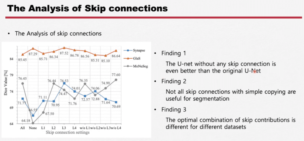 Skip connection에 대해서 실험을 할 때 데이터셋마다 combination이 다 다르다, contribution에 대한 combination이 다르다고 했는데 그 부분이 실제로 데이터셋마다 이렇게 시각화하고 해석 가능하게 표현할 수 있는 모델이 되었습니다.