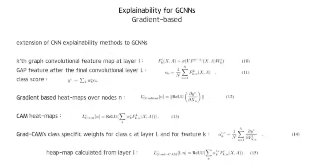 그리고 마지막 Convolutional 레이어 이후 gap feature L은 위 수식과 같이 정의되는데 위의 수식을 이용해서 Explainability method를 다음과 같이 GCN으로 확장합니다.