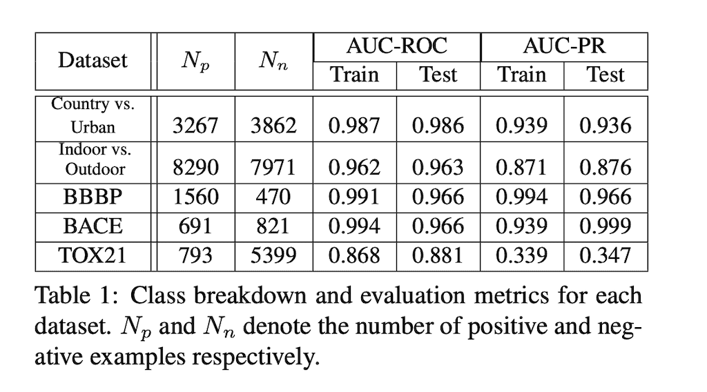 molecule Graph에 대한 explainability를 위해서는 BBBP, BACE 그리고 TOX21의 NR, ER데이터를 사용하였습니다. 각 데이터셋에는 실험에 의해 결정된 작은 organic molecule의 binary 클래시 피케이션이 포함되어 있습니다. BBBP 데이터는 분자가 인간의 혈액 뇌 장벽에 침투한 지 여부에 대한 측정이 포함되어 있으며 BACE 데이터셋에서는 human인자인 베타, 세크라 테스를 억제하는지 여부에 대한 측정값, TOX21에서는 여러 독성 표적에 대한 분자 측정값이 포함되어 있습니다. 앞선 데이터와 다르게 molecule Graph의 데이터는 불균형적입니다.