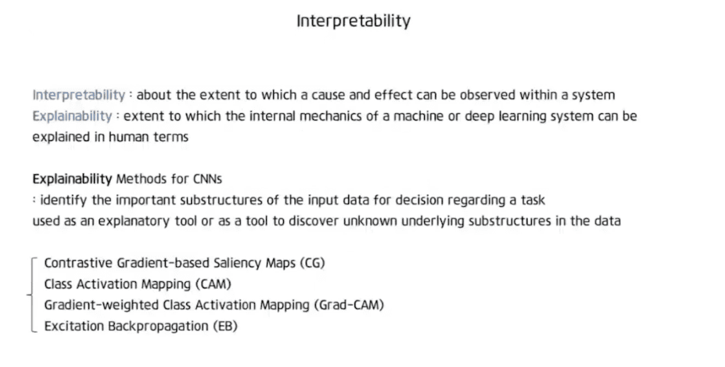 interpretability와 explainability 용어의 차이를 먼저 살펴보면 interpretability는 시스템 내에서 원인과 결과를 관찰할 수 있는 정도에 관한 것입니다. 다시 말해서 입력 또는 알고리즘 매개 변수가 변경되면 어떤 일이 일어날지 예측할 수 있는 정도입니다. 한편 explainability는 기계나 deep learning 시스템의 내부 역학을 인간의 용어로 설명할 수 있는 수준이며 실제로 일어나고 있는 일을 말 그대로 설명할 수 있는 것입니다.