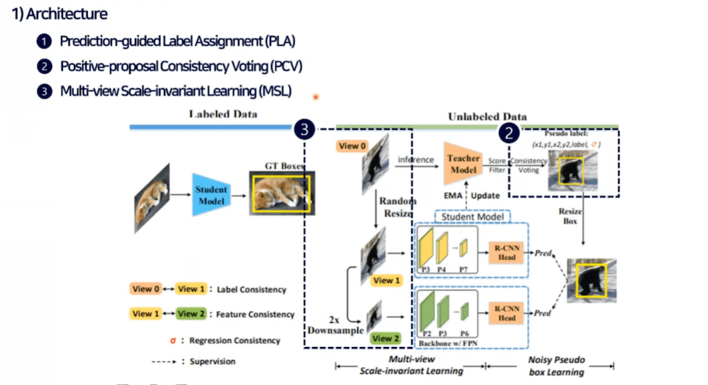저자는 Consistency 트레이닝 문제를 앞서 설명드린 Pseudo labeling과 같은 맥락으로 detection task의 속성을 고려하지 않았다고 얘기를 합니다.