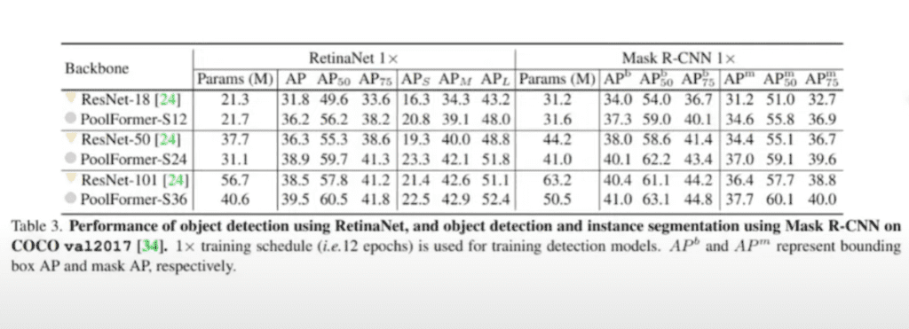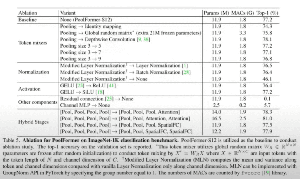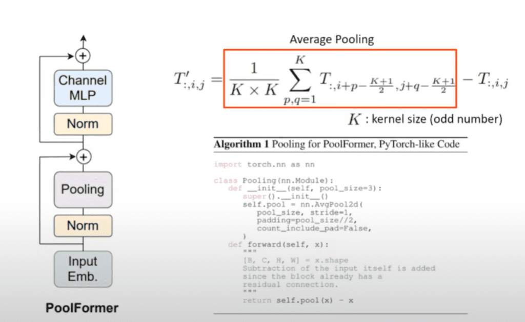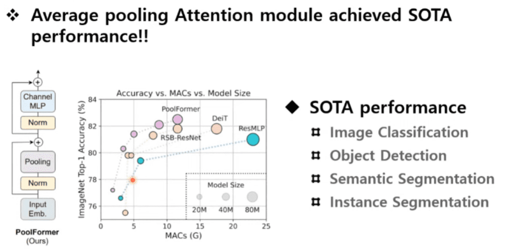 그래서 PoolFormer를 가장 성능이 잘 나왔던 모델로 제안을 하고 논문에서도 PoolFormer 구조를 메인으로 제안을 하고 있습니다.