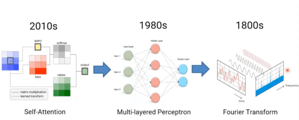 이 흐름을 좀 정리를 해 보면 2010년도에는 어떤 self attention이 Multi Layer perceptron에 다소 옛날 연산 방식으로 퇴화가 됐고 거기에서 한 번 더 Fourier Transform이라는 더 과거에 연산 방식이 token mixer 자리에 오더라도 성능이 잘 나온다 라는 흐름의 저자들이 보게 됐다고 이야기를 합니다.