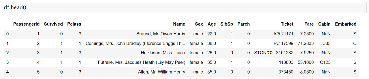 head() 함수는 불러온 데이터의 상위 5개의 행을 출력합니다. 괄호 ( ) 안에 원하는 숫자를 넣으면 그 숫자만큼 행을 출력합니다.