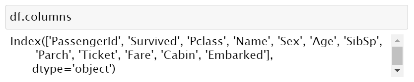 열 이름을 확인할 수 있는 함수입니다. shape과 마찬가지로 columns뒤에 괄호()를 사용하지 않습니다.