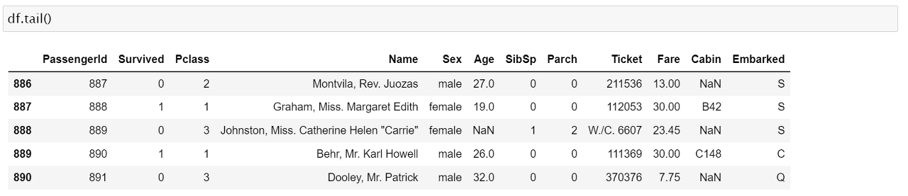 tail() 함수는 불러온 데이터의 하위 5개의 행을 출력합니다.