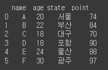 'state': ['서울','부산','대구','포항','울산','광주'],