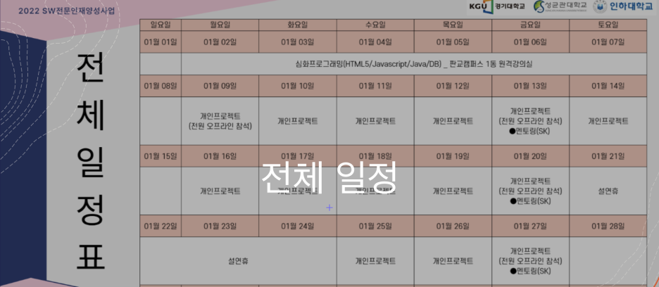 해당 강의는 2월 달까지 진행되며 팀프로젝트로 구성됩니다 다음에는 팀프로젝트 만족도도 함께 공유드릴게요!