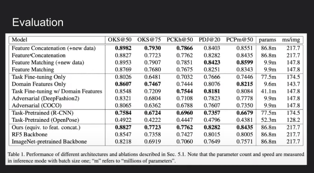위에서 보았던 feature concatenation 모델은 무거운 대신 조금 더 나은 퍼포먼스를 보여줍니다. 그리고 feature Matching 모델은 조금 빠른 대신 조금 떨어지는 성능을 보여주었습니다.