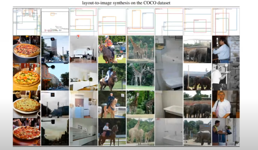 다음 task들은 샘플로 가져와 본 task들입니다. 이것들은 여기서 지금 Semantic 한 박스의 레이블을 주게 되면 공간에 이런 식의 이미지를 생성을 해준다고 합니다.