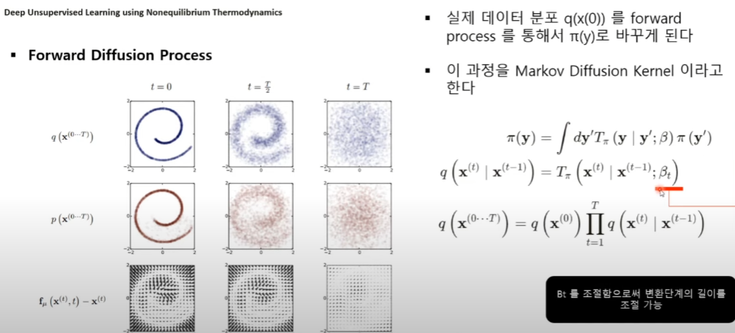 그리고 여기서 β라는 파라미터를 사용하게 되는데 이 β t 파라미터 같은 경우에는 t0 시점부터 t시점까지의 변환을 몇 번이나 길게 가져가게 되느냐, 스텝을 얼마나 촘촘하게 가져가느냐를 결정해 주는 파라미터라고 볼 수가 있습니다.