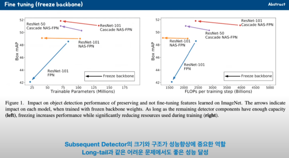 그래서 추가된 Detector에 크기와 구조가 성능 향상에 중요한 역할을 한다, 그리고 또 한 가지는 Long-tail 즉, 우리가 자주 볼 수 없는, 레어 한 클래스에서도 좋은 성능을 달성할 수 있다고 얘기하고 있습니다.