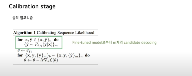 Calibration stage 동작방식입니다. 먼저 Fine tuned 모델로부터 m개의 canditate를 decoding 합니다.