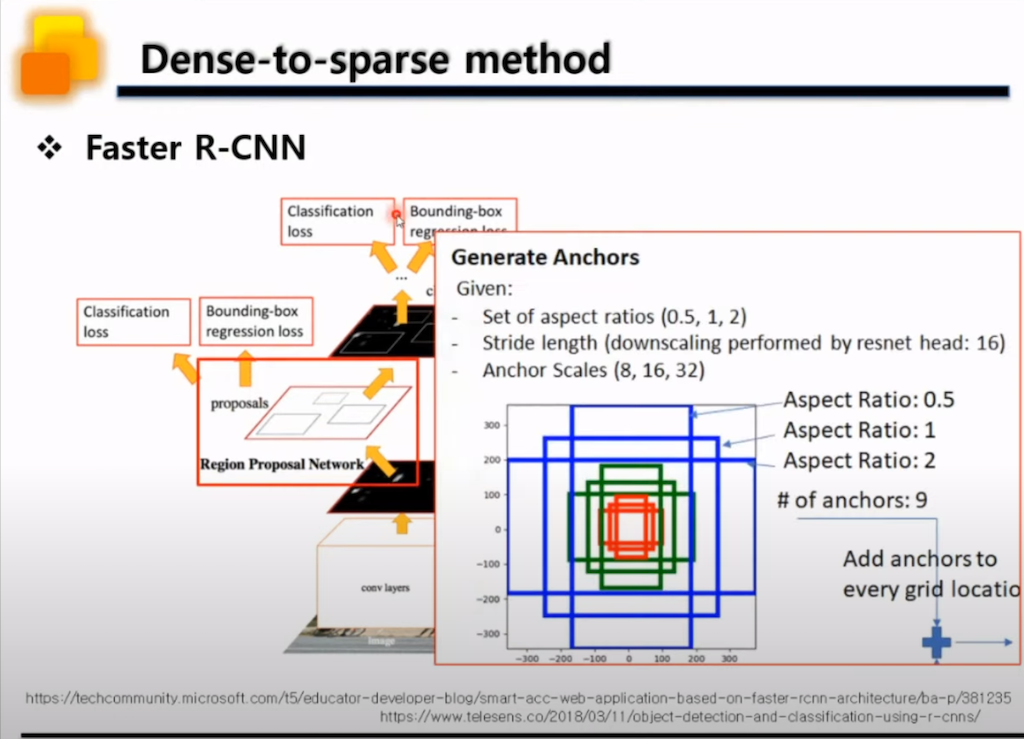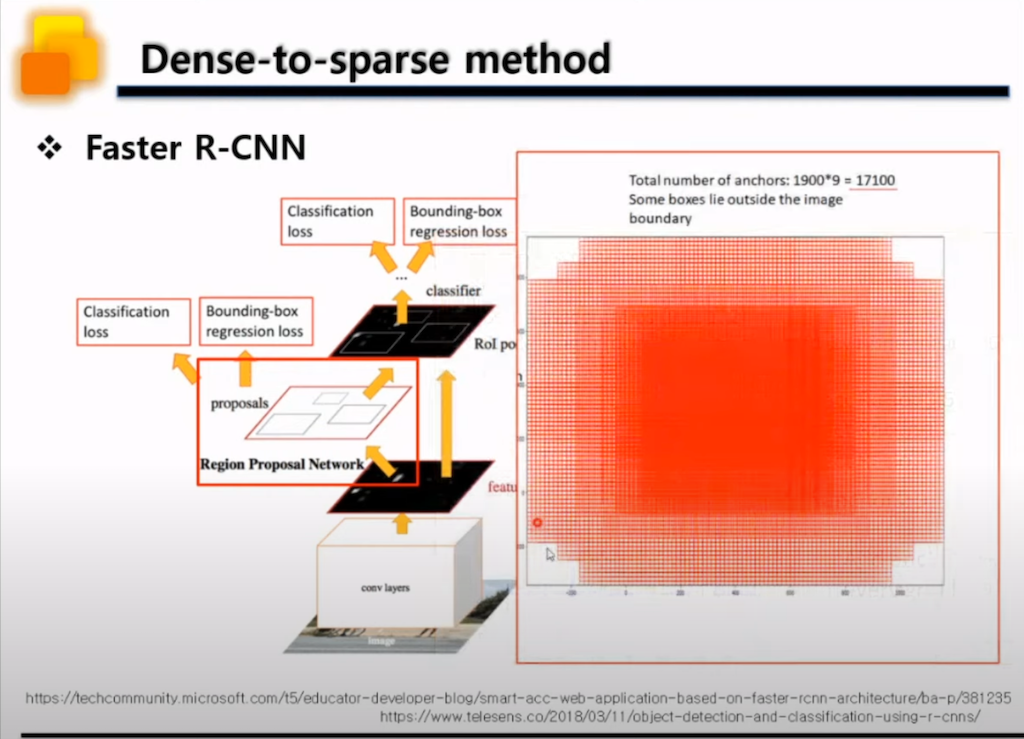 여기에서 한번 필터를 하면, 적은 수의 region proposal들이 생성이 되게 되고, 조금 적은 수의 region proposal들이 있고, 상대적으로 바운딩 박스가 적다고 해서 Dense to Sparse라고 저자들은 분류합니다.